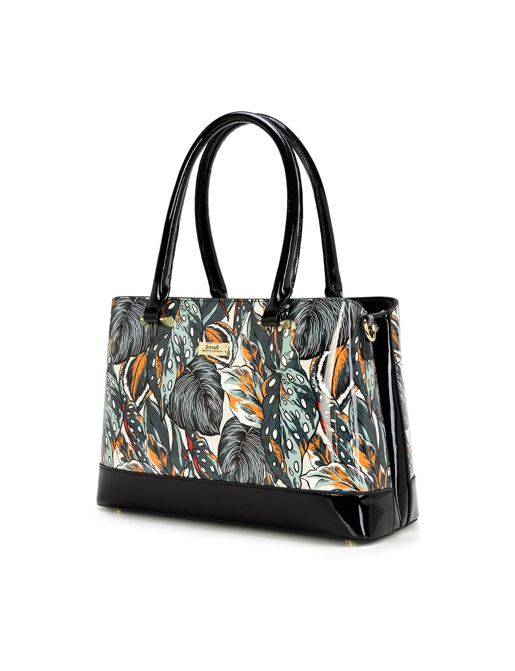 This Serenade Beverly Hills Collection Phyllis patent leather handbag is perfect for everyday use. Crafted from premium leather, featuring a stunning floral pattern, two interior zippered compartments, 2 interior slip pockets and an external zip compartment ideal for organising all your belongings.